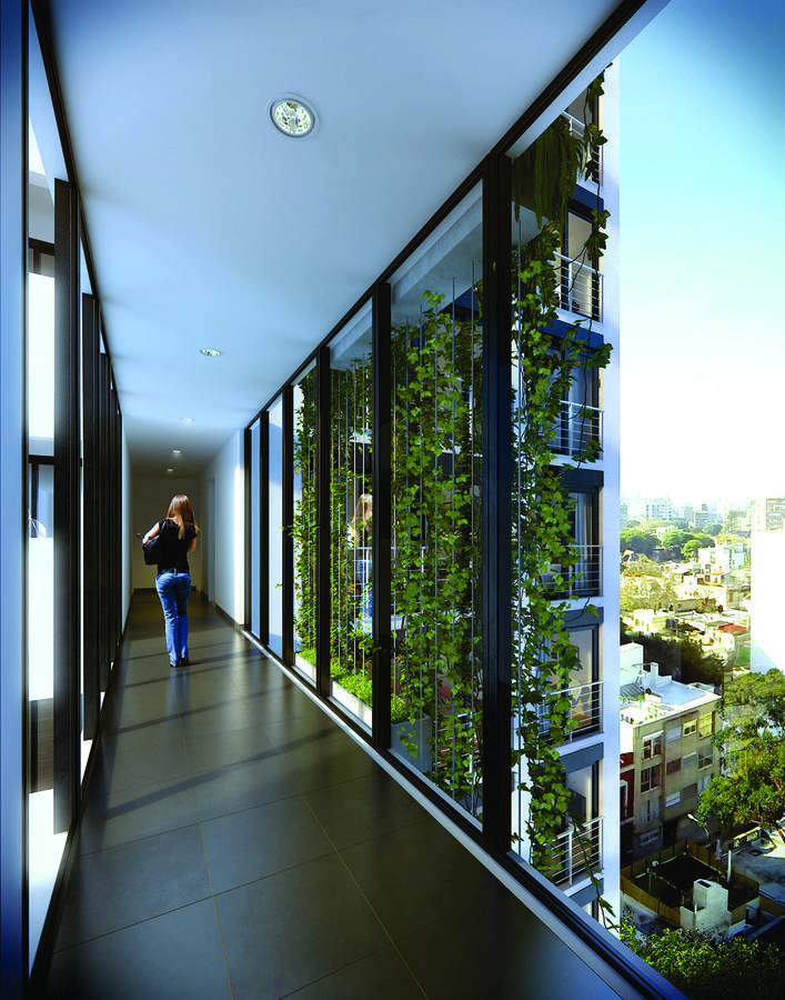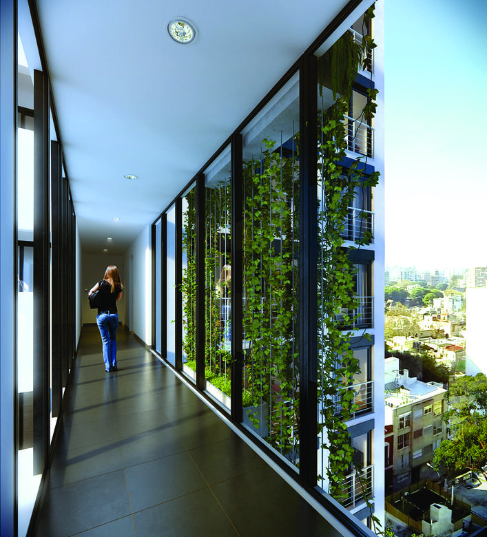 Barbacoa elevada con parrillero -Terraza en expansión al frente – Espacios comunes luminosos – Puente verde con paisajismo