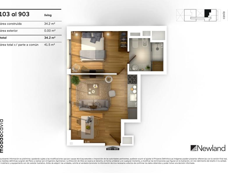 Tamaño de propiedad 34.60 M2