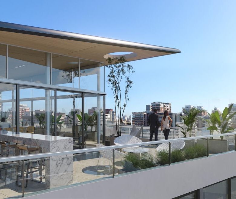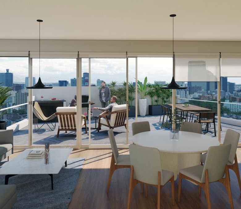 **Perspectivas artísticas del emprendimiento. El mobiliario fue incluido a título ilustrativo y no forma parte del contrato. Material sujeto a alteraciones. La entrega podrá realizarse en etapas, pudiendo variar la fecha de esta, de acuerdo a los cuerpos de ascensores, suministro definitivo de conexiones, equipamiento de espacios comunes, habilitaciones, etcétera.**