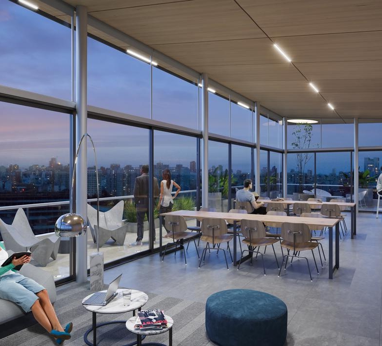 – Sector con livings al estilo coworking con equipamiento moderno y flexible, mesas de reunión, etc.