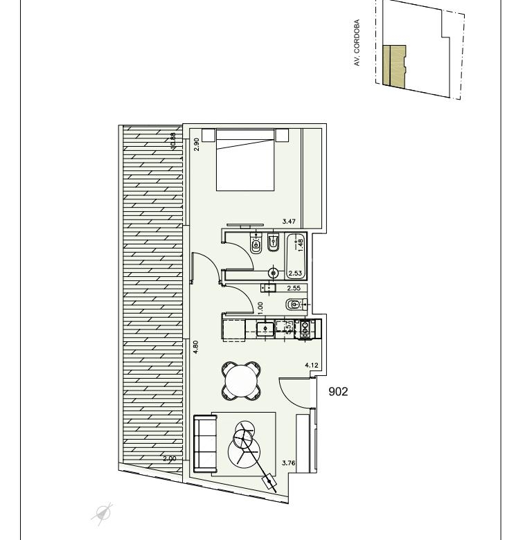 Unidades de 2 ambientes con Conexión para lavarropas o lavavajillas.