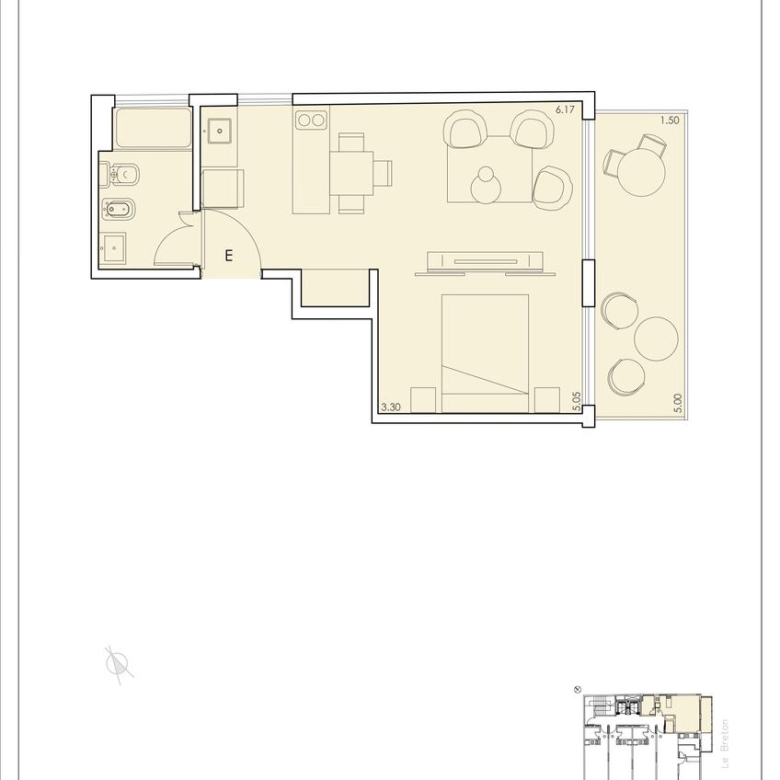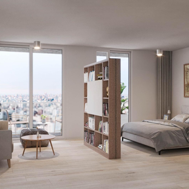 **Perspectivas artísticas del emprendimiento. El mobiliario fue incluido a título ilustrativo y no forma parte del contrato. Material sujeto a alteraciones. La entrega podrá realizarse en etapas, pudiendo variar la fecha de esta, de acuerdo a los cuerpos de ascensores, suministro definitivo de conexiones, equipamiento de espacios comunes, habilitaciones, etcétera.**