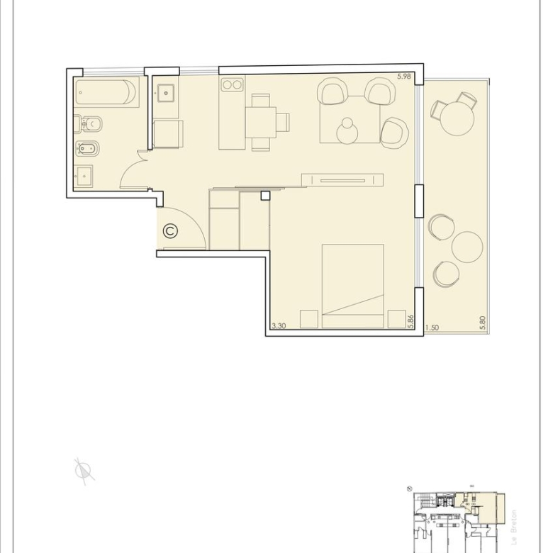 **Perspectivas artísticas del emprendimiento. El mobiliario fue incluido a título ilustrativo y no forma parte del contrato. Material sujeto a alteraciones. La entrega podrá realizarse en etapas, pudiendo variar la fecha de esta, de acuerdo a los cuerpos de ascensores, suministro definitivo de conexiones, equipamiento de espacios comunes, habilitaciones, etcétera.**