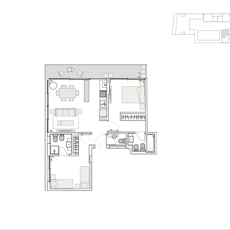 Concepto de amenities centralizados con un acceso exclusivo y núcleo de ascensores independiente. La dinámica de usos múltiples genera una vivencia de mayor seguridad, generando sinergias. Un espacio de descanso, que invita a jugar, a soñar, con entorno peatonal, fomentando los espacios sociales.