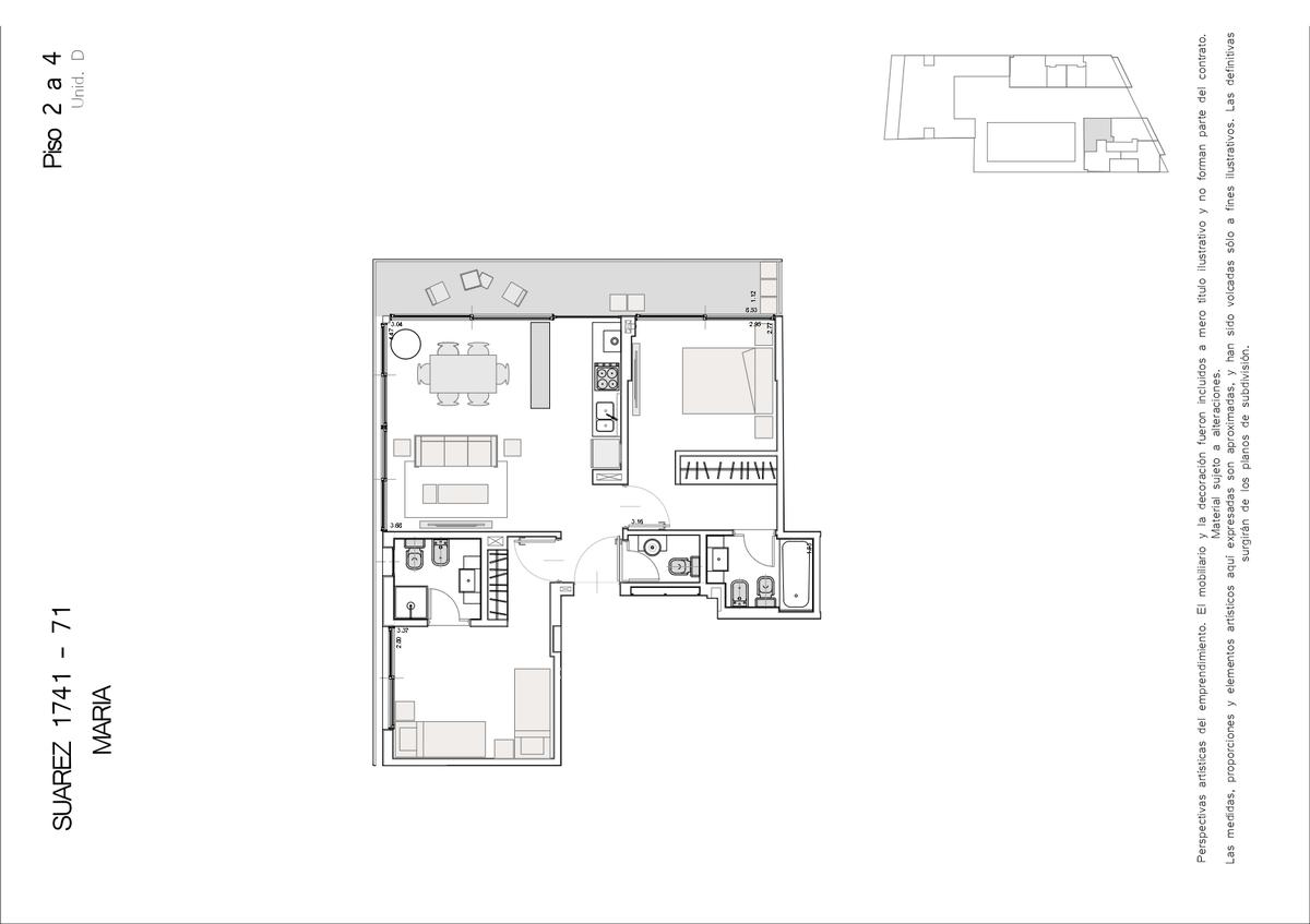 **Perspectivas artísticas del emprendimiento. El mobiliario fue incluido a título ilustrativo y no forma parte del contrato. Material sujeto a alteraciones. La entrega podrá realizarse en etapas, pudiendo variar la fecha de esta, de acuerdo a los cuerpos de ascensores, suministro definitivo de conexiones, equipamiento de espacios comunes, habilitaciones, etcétera.**