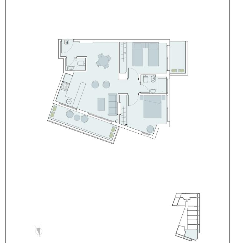 **Perspectivas artísticas del emprendimiento. El mobiliario fue incluido a título ilustrativo y no forma parte del contrato. Material sujeto a alteraciones. La entrega podrá realizarse en etapas, pudiendo variar la fecha de esta, de acuerdo a los cuerpos de ascensores, suministro definitivo de conexiones, equipamiento de espacios comunes, habilitaciones, etcétera.**