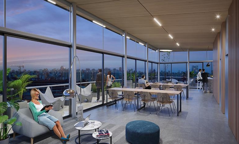 – Sector con livings al estilo coworking con equipamiento moderno y flexible, lugares de Lockers,
