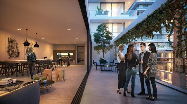 Concepto de amenities centralizados con un acceso exclusivo y núcleo de ascensores independiente.